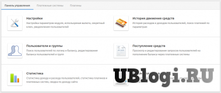 В комплекте идет платежный агрегатор RoboKassa и плагины Перевод средств и Возврат средств.