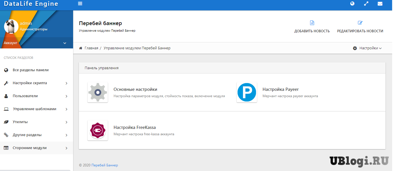 Скачать бесплатно: Модуль перебей баннер для DLE от uBlogi