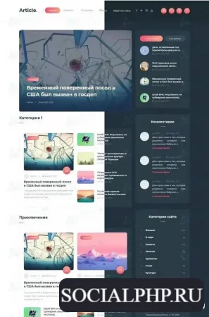 Премиальный шаблон для новостных сайтов, газет или журналов. Также подойдет для путешествий, моды, здоровья политики. Авторы создавали универсальную и простую в использовании тему. На главной странице в шапке выводится логотип в виде картинки. Здесь же добавлено рекламное место для баннера. Далее идут рубрики портала без выпадающего меню. После чего сайт разделяется на две колонки.