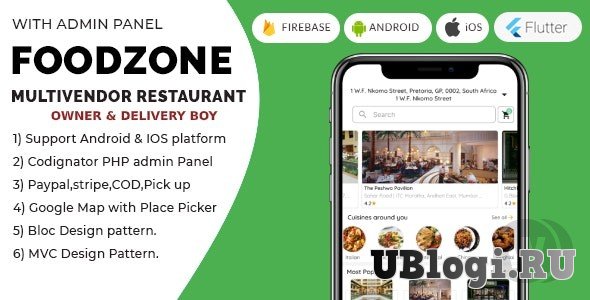 Мультивендорный ресторан «FoodZone» - это комплексные решения, созданные с помощью google flutter dart и административная панель PHP. Приложение было создано в среде dart Flutter, которая поддерживает платформы iOS и Android. Мы использовали административную панель PHP CodeIgniter, которая работает для admin панели, а также для владельцев ресторанов. Владелец может добавить несколько ресторанов с разными расположениями.