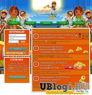 Игра "SURFERS-MONEY" будет Вам приносить море эмоций и позитива, а так же Реальные Деньги.