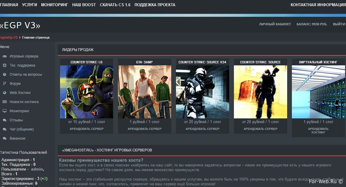 Панель управления игровыми серверами - EGPV3. это обновлённая и доработанная оригинальная версия EngineGamePanel