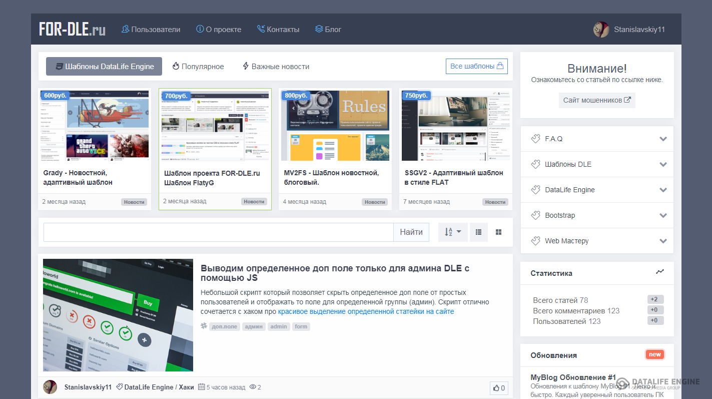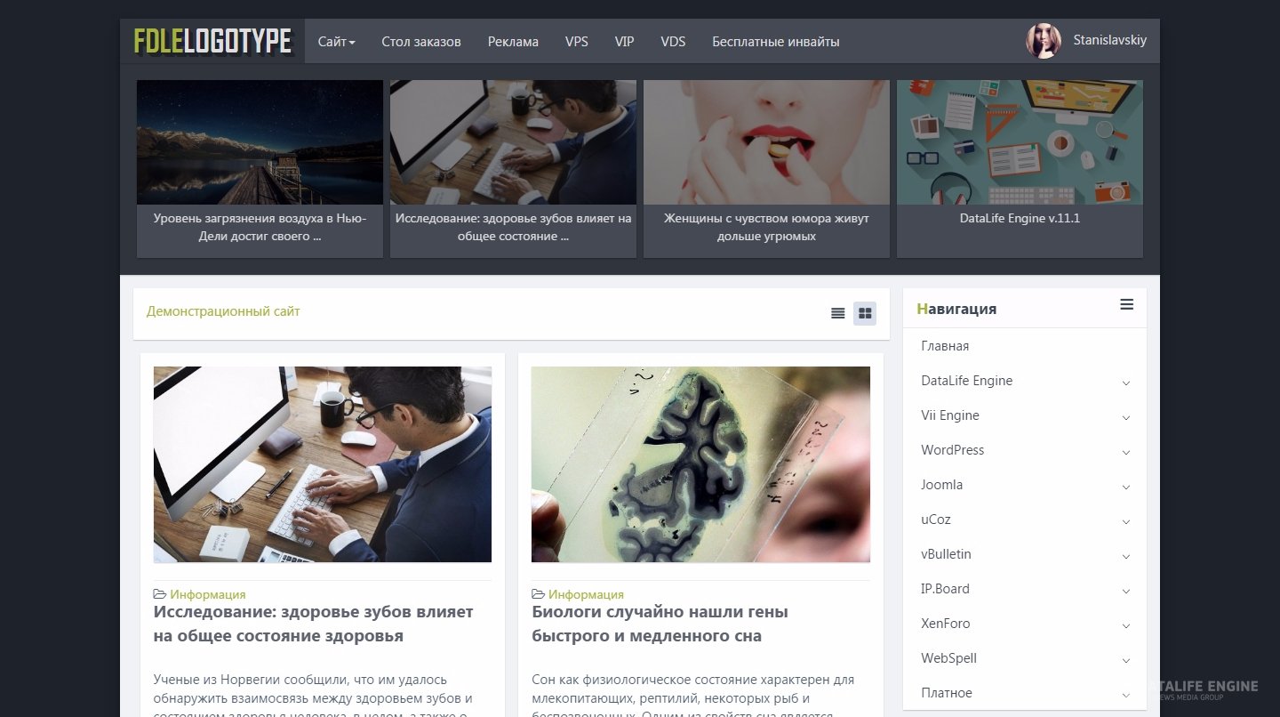 Универсальный, адаптивный шаблон под DataLife Engine от версии 10.6Простой и приятный глазу дизайн манит всё больше и больше пользователей на сайт.