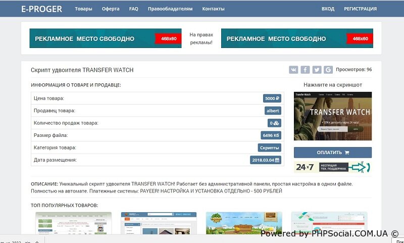 E-proger - бесплатно скрипт интернет магазина, где присутствует все необходимое для полностью автоматической работы. Он имеет несколько степеней защиты файлов, кэширование изображений, а также ajax загрузку файлов. Его особенность в том, что он на уникальном движке и отлично подойдет для цифровых товаров!
