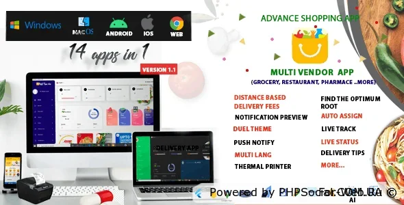 Multivendor Super App - приложение для доставки еды, Бакалея, Аптека, Электронная коммерция (Windows, Mac, Android, IOS, Интернет) 14 приложений в приложении.