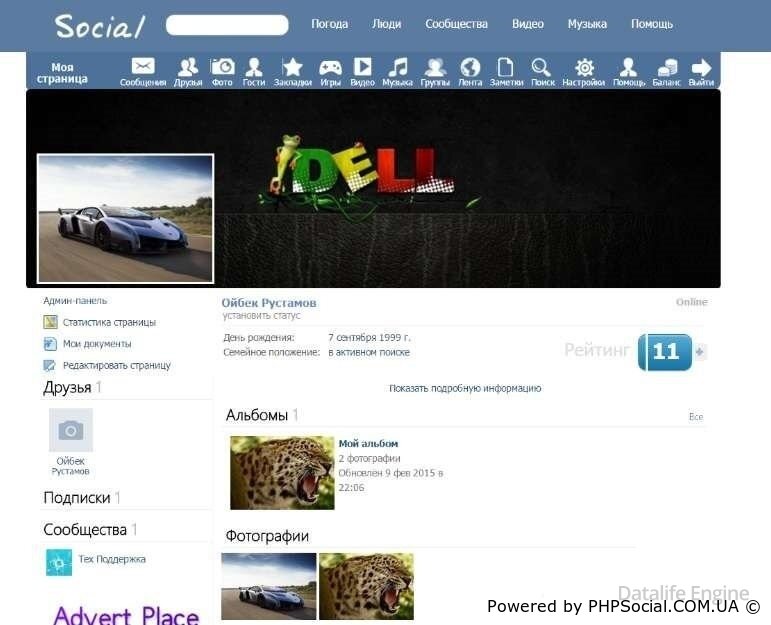 Скачать скрипт социальной сети,подобие вк. - Social v1.0 Rus это скрипт социальной сети, с помощью которого пользователи могут взаимодействовать друг с другом, отправлять сообщения, комментировать, обмениваться фотографиями, файлами, видео и многое другое.
