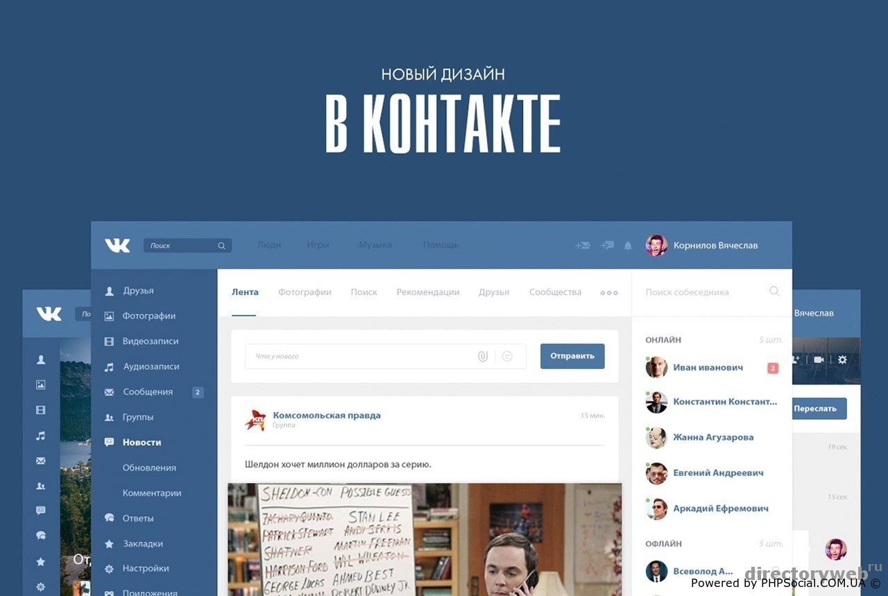 Скрипт социальной сети ВКонтакте NEW с новым дизайном на базе системы управления сайтами Vii Engine.